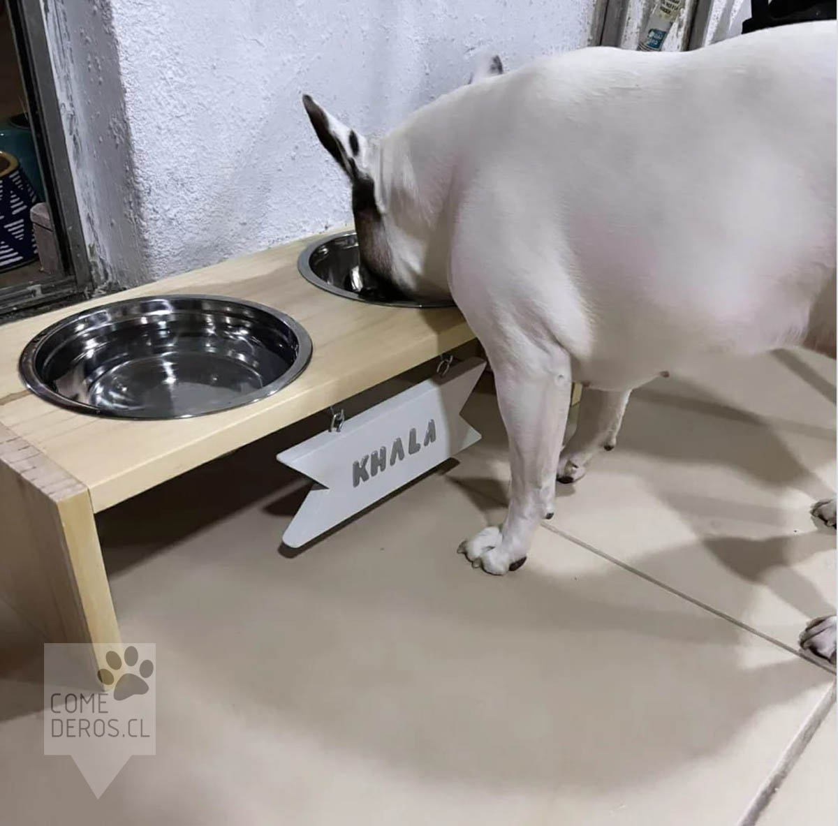 Chihuahua 10 cm de alto,madera triple, plato ceramico.